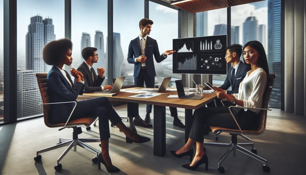 diverse professionals discussing the concept of іфтефтвук in a modern office.