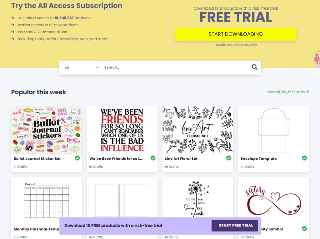 With new files added regularly, clear licensing, and thematic collections tailored to seasonal and trending niches, Creative Fabrica is a must-visit destination for creators who need ready-to-use, premium-looking files without the cost.