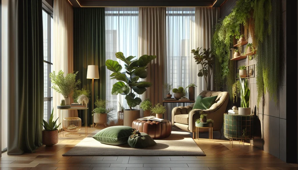 Who doesn’t love a touch of greenery? By strategically placing plants on shelves or hanging them in macramé hangers, we can not only liven up our space but also purify the air. Let’s explore the joys of arranging plants at different levels. It creates a dynamic environment that feels both vibrant and inviting, and it reduces the need for bulky furniture.