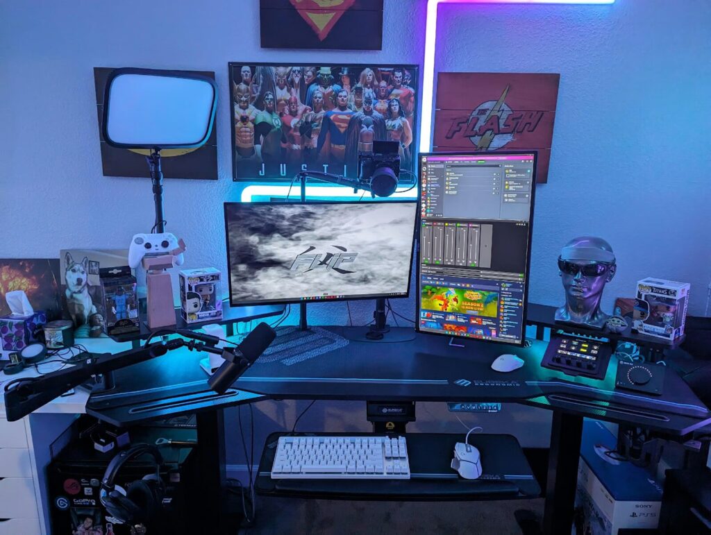 • Requirements: Extreme desktop space, high load-bearing capacity, and absolute stability to support 2-3 large monitors, a mixing console, and a heavy-duty PC.