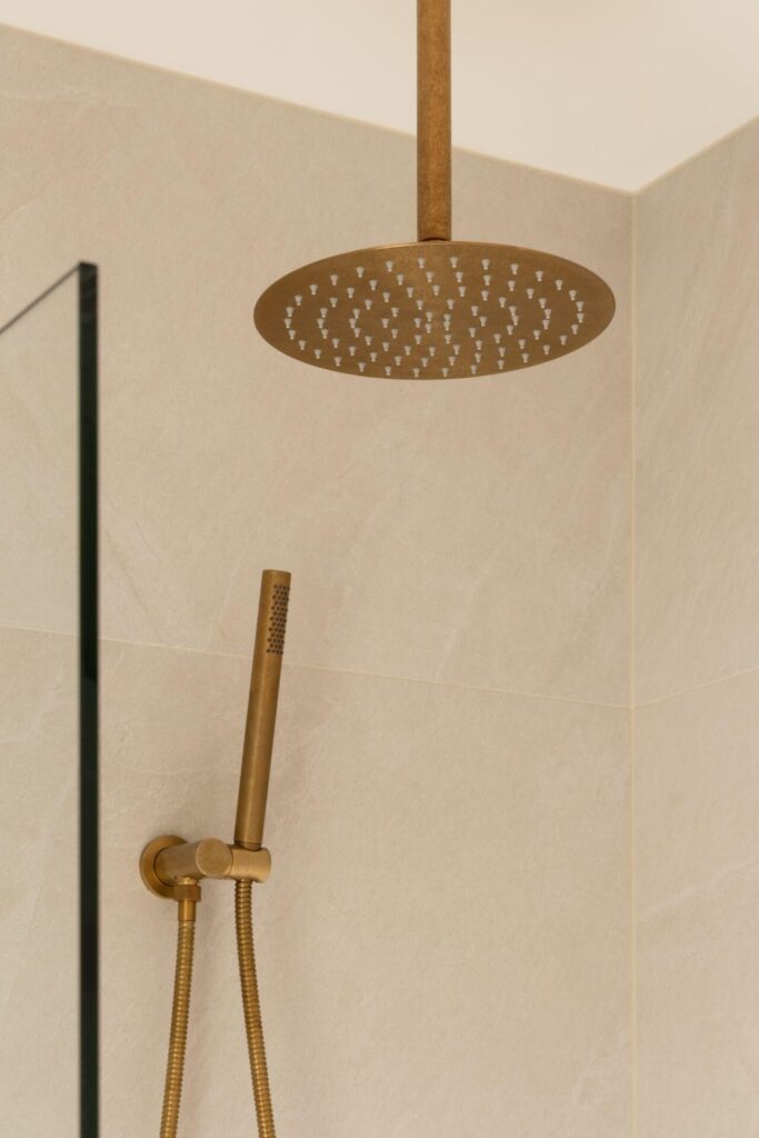 Material cohesion does not require uniform application. Most interiors rely on a dominant finish supported by variation in secondary elements. Antique brass may lead in hardware, while lighting or decorative fittings introduce complementary warm tones. Repeating the finish across key touchpoints, such as door hardware, cabinetry, and tapware, helps create a sense of continuity between spaces.