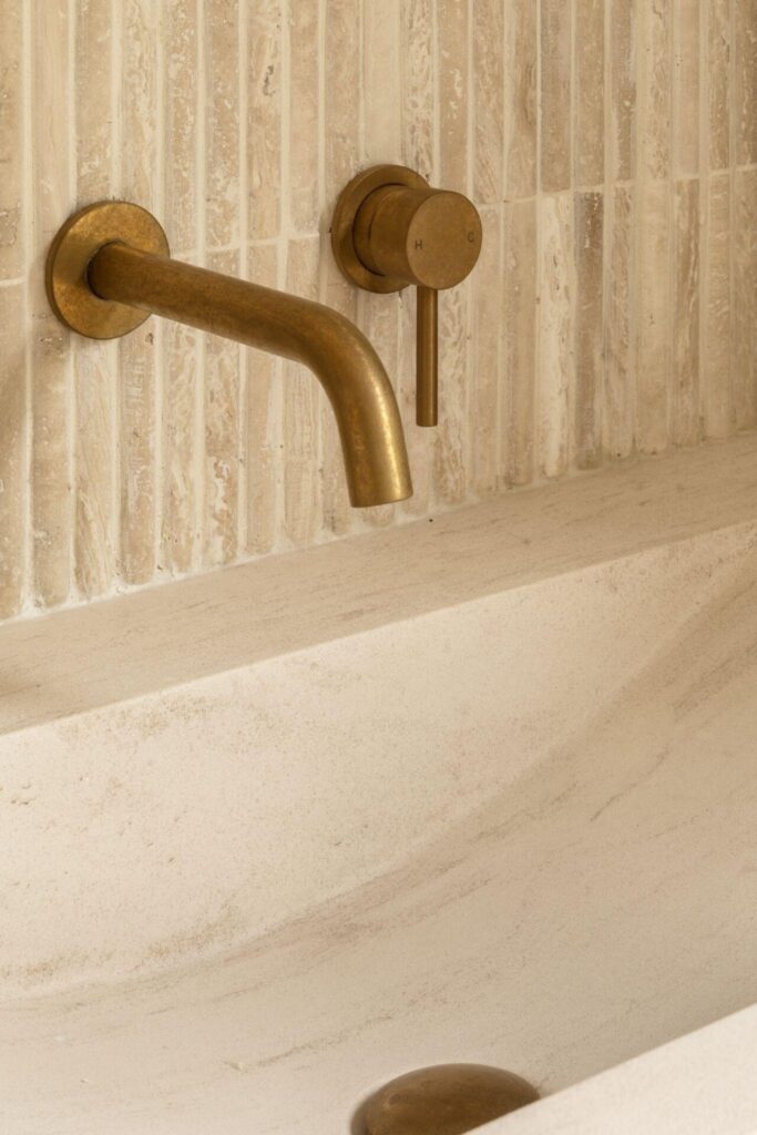 One of the reasons antique brass works across so many styles is its aesthetic versatility. Against hard, cool surfaces like polished concrete or natural stone benchtops, it introduces warmth without competing, softening architectural edges and adding a layer of refinement.